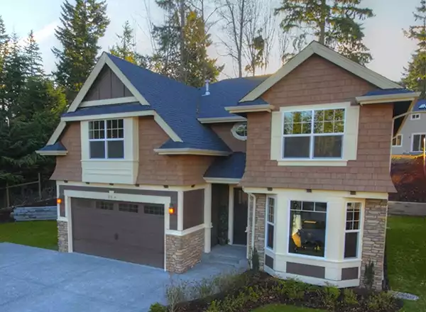 Designed for a builder who needed a great solution for his smaller lots, the Greenwood has proven very popular with those needing a lot of usable space combined with a lot of curb appeal in a small area. Formal and informal living and dining spaces plus a surprisingly big kitchen grace the main floor, while a spacious master suite plus three secondary bedrooms and a bonus room are found upstairs. Upper balcony overlooks to the foyer and center hall bring drama and light into the heart of the home. The faade offers a graceful composition of gables, shingles, shutters and trim.