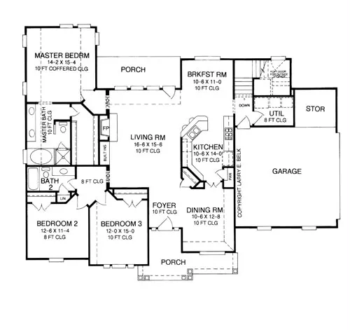 Traditional styling distinguishes this efficient layout. A rear stair provides handy basement access.