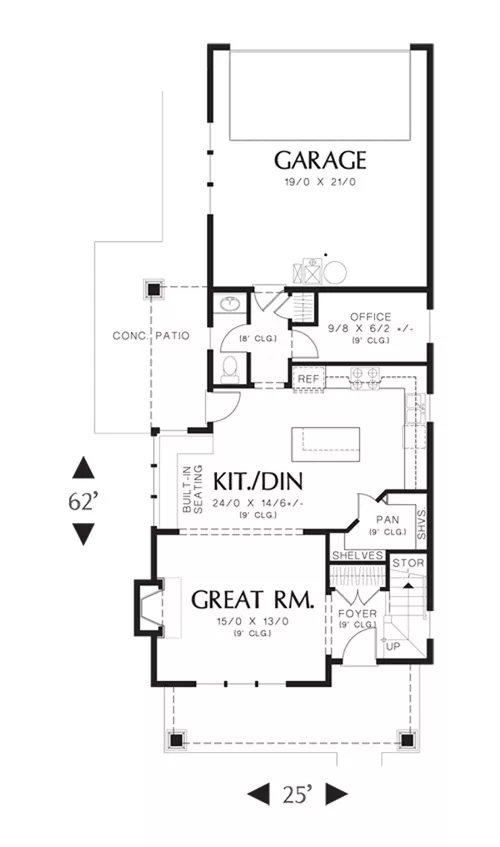 At only 25 ft. wide, the Florette has a great layout with a compact footprint. A front porch leads through the foyer to a cozy great room with a good size open kitchen and dining area. A walk-in pantry and office are rare amenities in such a narrow home this plan has it all! Upstairs, a vaulted master bedroom offers a fantastic retreat, while two additional bedrooms leave room for growing families.