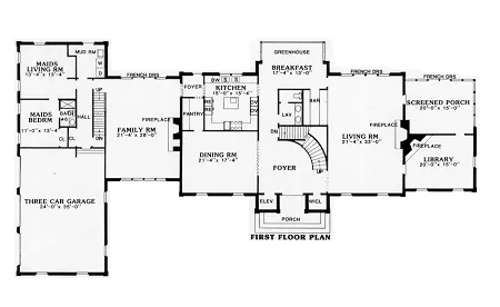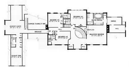 This luxurious two story home provides all the space - and charm - for a gracious lifestyle. It is a formal, balanced home with a very separate informal entertaining wing. There are two apartments in the garage wing, one for guests, one for live-in help, if that is your requirement. Modern amenities include the solarium breakfast room, an elevator, and the two story vaulted family room. The master suite includes a large, compartmented bath, dressing area and huge walk-in closet. Each of the other bedrooms has its own bath. Plans call for 4 fireplaces.