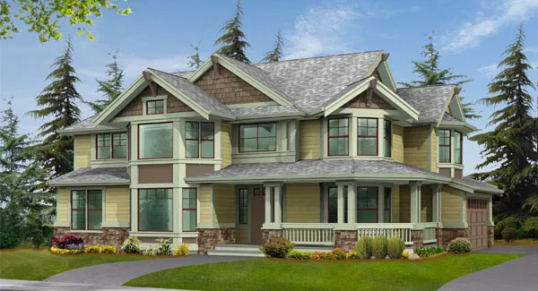 The Hazelwoods compact footprint, side-entry garage and huge curb appeal make this charming craftsman perfect for corner lots. A beautifully composed facade with a farmhouse-influenced entry porch opens into a flexible, modern floor plan, with bay windows in six rooms creating a feeling of warmth and intimacy. The bayed office opposes the formal living and dining room at the foyer, while the informal family room, nook and chefs kitchen surround a large rear BBQ patio. A grand master suite with bayed sitting area occupies one side of the upper floor, while across the central bridge lie two secondary bedrooms, a compartmented bath, and a large bonus room.