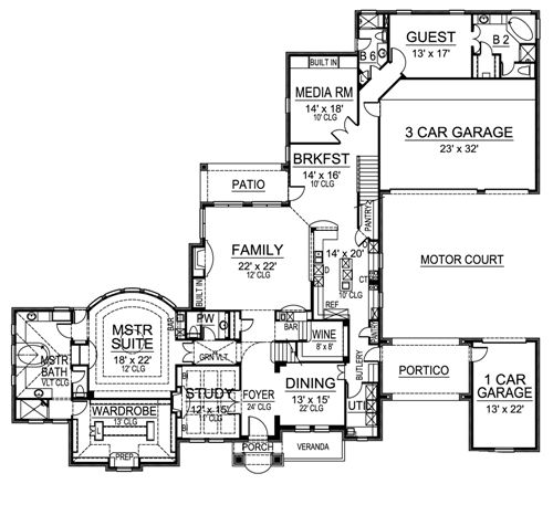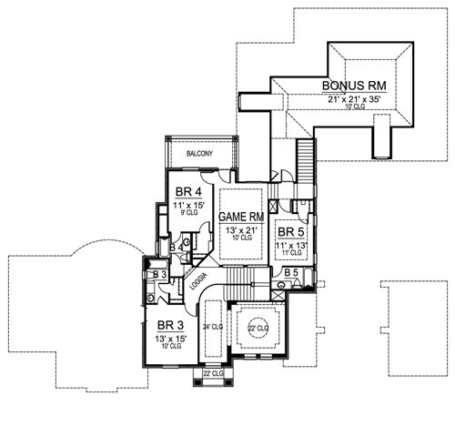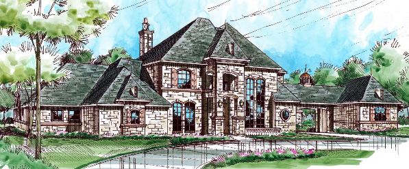 This spacious traditional home has plenty of space, and rooms on the main level for your in-laws! Entering the two story foyer, the coffered ceiling of the warming study will immediately grab your attention. Across the foyer is the two story dining room. The kitchen has a breakfast bar and free-standing island. Enjoy the family room's warming fireplace and built-ins. A media room behind the breakfast area is a great place to watch a movie on that large screen. A guest suite with full bath and walk-in closet has access to the three-car garage. The master suite offers a tray ceiling; a lavish bath with vaulted ceiling, garden tub, separate shower, and his and hers vanities; and a large wardrobe. Upstairs three bedrooms with walk-in closets and full baths share space with a game room, a loggia and a balcony. A bonus room completes this luxury mansion house plan.