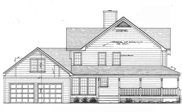 Country farmhouse comes to mind when looking at this two story wrap porch design. The rear garage with its side entry into the breakfast area allows for easy access.