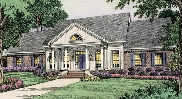 Great features include the family dining area with the sitting and breakfast rooms combined. A desk and walk-in pantry enhance the large kitchen. Vaulted ceiling, fireplace and built-in cabinets are provided in the greatroom. Architectural columns offer guidelines for the dining room from the foyer. Optional expansion can add up to an additional 1132 square feet upstairs.