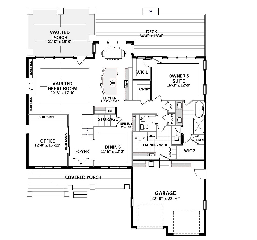 Each set of construction documents includes detailed, dimensioned floor plans, basic electric layouts, cross sections, roof details, cabinet layouts and elevations, as well as general IRC specifications. They contain virtually all of the information required to construct your home. The typical plan set does not include any plumbing, HVAC drawings, or engineering stamps due to the wide variety of specific needs, local codes, and climatic conditions. These details and specifications are easily obtained from your builder, contractors, and/or local engineers.