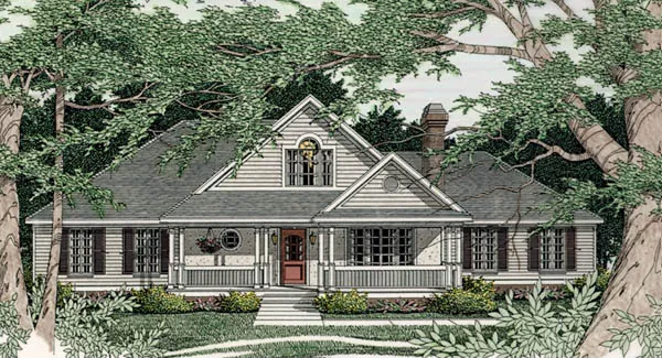 This traditional home features multiple columns and gables. The entry leads to a living room accented with 10'ceilings and a fireplace flanked by built-in cabinets. The kitchen has all possible necessities including a desk and snack bar. A skylit loft and a future room are included on the upper floor. The future room will add an additional 231 square feet.