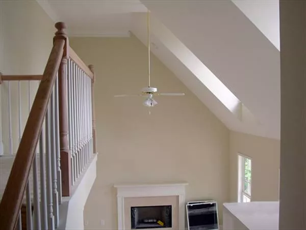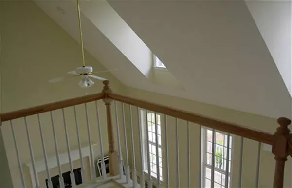 Dormers seen on the front of the house open to the vaulted living area, creating an additional light source for the room.