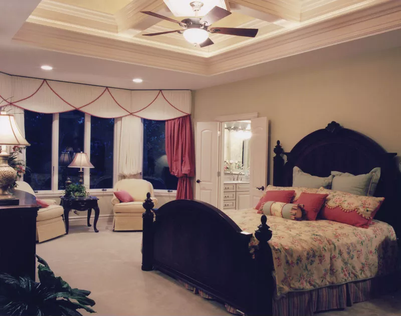 The left side of the home features a beautiful master suite with a large walk-in closet, a separate tub and shower, and two vanities. An additional bedroom features its own bathroom and a walk-in closet.