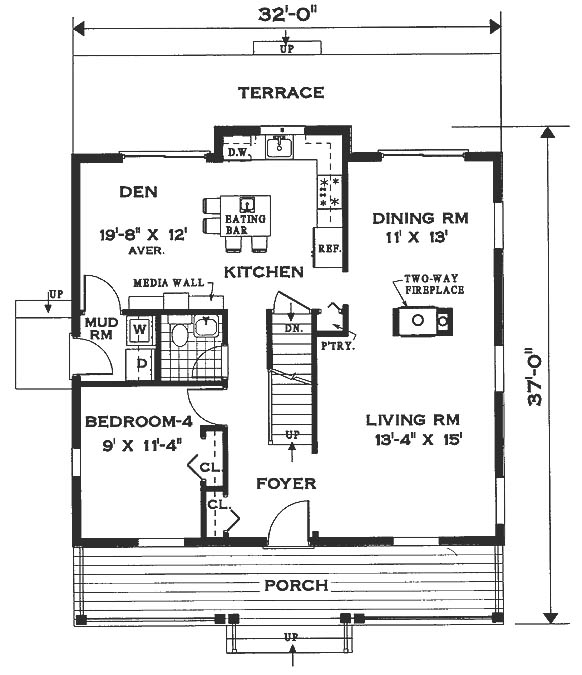 Front porch accented with traditional dormers. The living and dining room areas with large windows overlooking the front porch and rear terrace, a two way fireplace separates the two areas. Large country kitchen and den area includes an eating bar and built in media center. The master suite includes oversized walk-in-closet, bathroom and 10 ft. high vaulted ceiling.