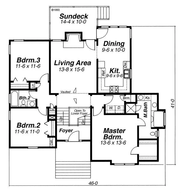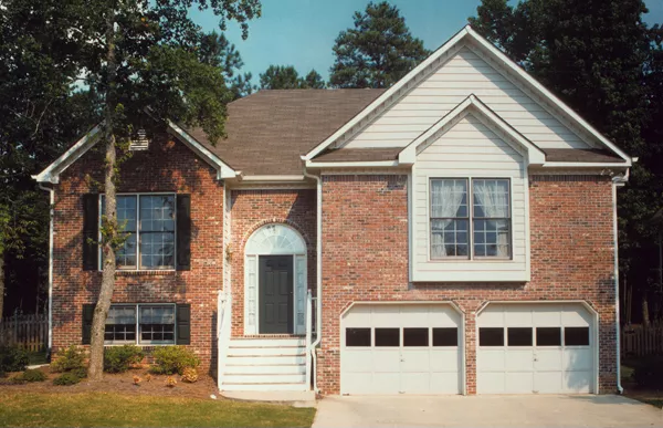 Vaulted ceilings help expand the sense of space in this compact split foyer. The entry stairs climb to a living room with windows all across the back wall helping your view to go well beyond the walls of the house. A side fireplace is framed by the modified cathedral ceiling making it a focal point. The cathedral ceiling of the dining room opens to the foyer as well creating a dramatic entrance.