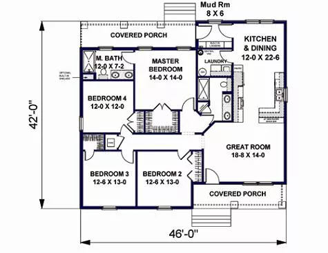 Please allow 2 weeks to complete this plan after you place your order. No wasted space in this beauty! The great room is open to the kitchen with a snack bar. Lots of cabinets are located in the kitchen for storage. A mudroom is located off the rear porch and is home to a built-in storage area for coats, cellphone, books, shoes, etc. The master bath has a large shower (3'x 5') and dual sinks. The large walk-in closet gives extra storage