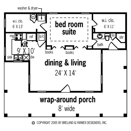 live-in parents. It is also ideally suited for commercial use as rental accommodations. The wrap-a-round porch creates a warm and inviting entry and it is a great place for spending a relaxing evening. The open living and dining room provides a functional and spacious interior. Louver bi-folding doors open to the bedroom to further expand the openness of the plan. There is abundant storage space supplied by two king size walk-in closets. Typical ceilings are 10 high. The master bedroom has a tray ceiling for added interest.