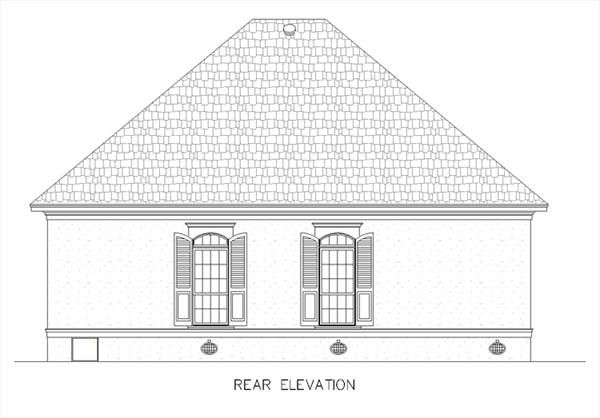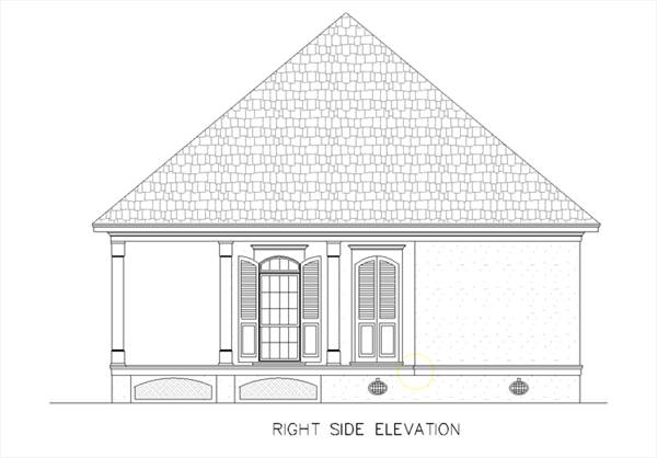 Operable wood shutters, columns, window and door transoms and arched door trim provide interesting detail to the exterior.