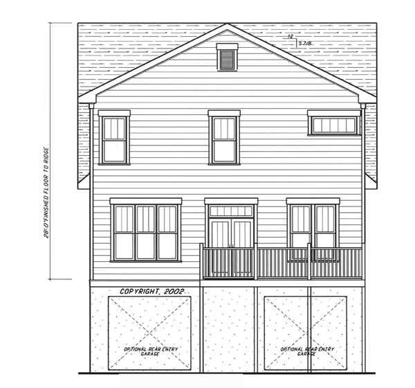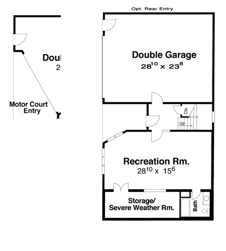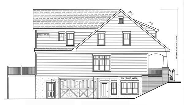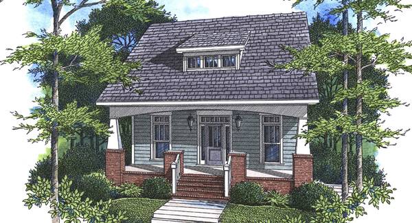 A Craftsman style bungalow with a surprise! This house is perfect for narrow lot development that has a little fall to the property. The unique garage entry allows you to fit this 30' wide plan with a side entry garage on a 45'-50' wide lot. This can be built where a rear loading garage plan wouldn't work making it a great addition to a traditional type neighborhood with less than perfectly flat conditions.