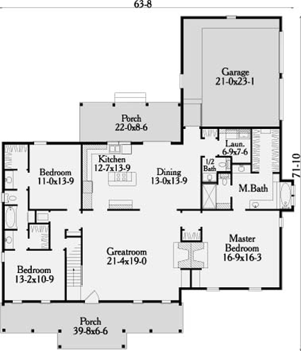 A "hollywood" style bath is present for the extra bedrooms, each having a private vanity and a walk in closet. The double fireplace is warming for the great room and master suite. An island snack bar and a large pantry are featured in the kitchen. For expansion or attic storage an additional 1385 square feet is available upstairs.