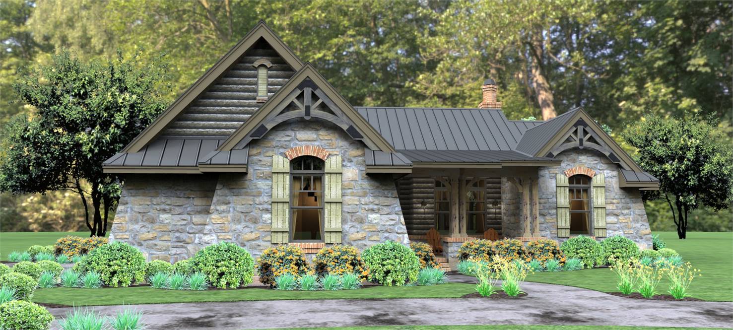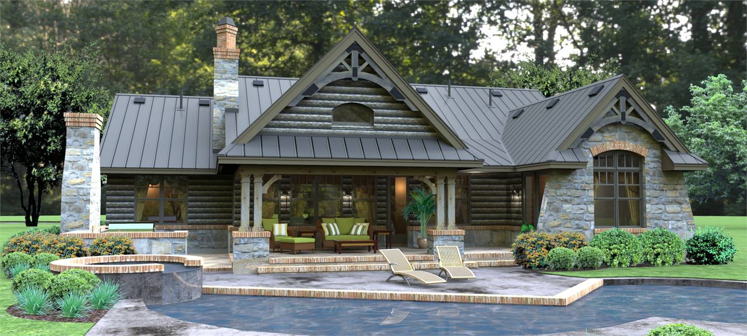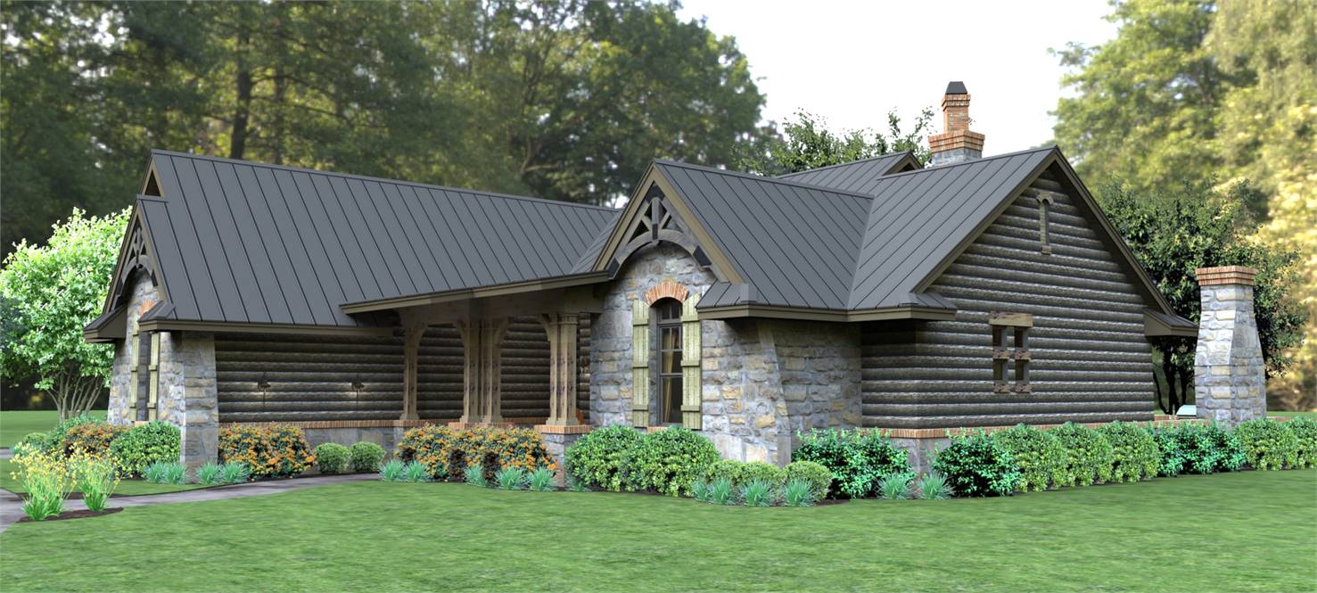 A rustic appearance and a cozy but spacious front porch frame the entry into this design. A large rear porch creates a comfortable outdoor living area and wide open views from the family room.