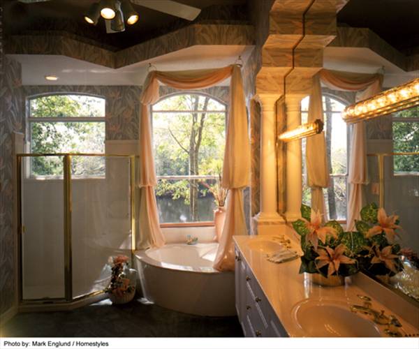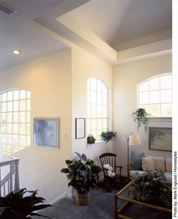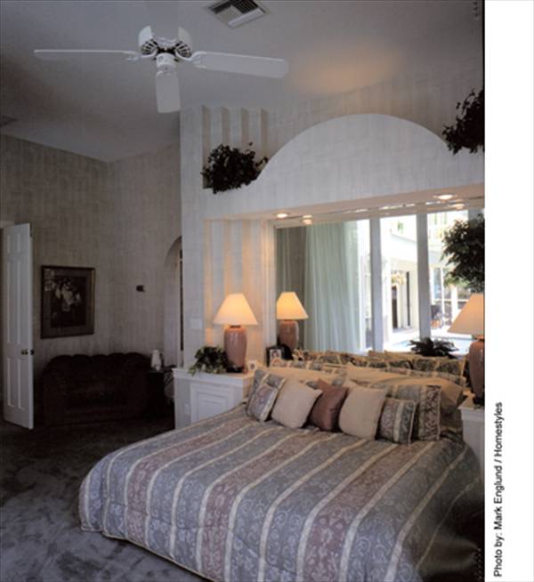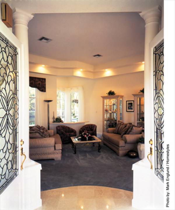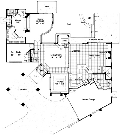 If work requires after-hours peace and quiet, the combination den and study near the master suite is away from the main flow of traffic but close to the foyer for business visitors. The nearby bath allows it to become a guest room.
