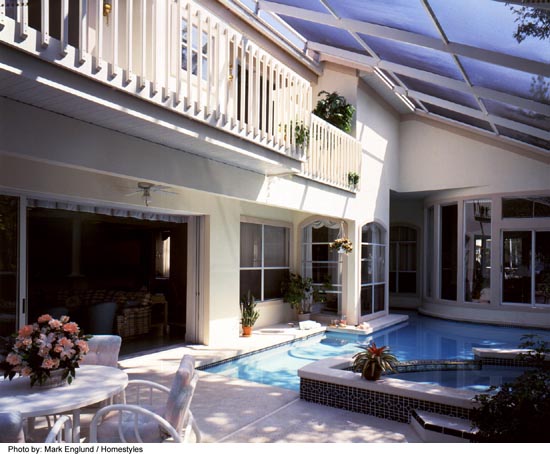 The special details in this home, were designed to be achieved affordably by taking advantage of drywall architectural elements. This house was originally designed for lakefront property so in order to pull the water view into the house I designed the pool to come up next to the house.