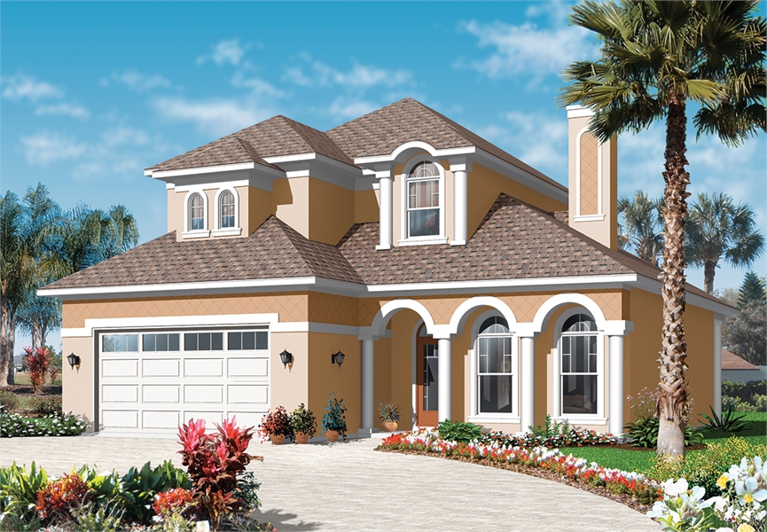 An elegant example of a stately yet affordable Mediterranean style plan, this 2,550 square foot home is a wonderful option to consider for the beach. The Tuscan flair of this home only begins with the marvelous stucco façade and sweeping archways. A quaint covered front entryway finds you in the grand foyer of this spacious 4-bedroom, 3.5 bathroom plan. Immediately to your right you will see a formal dining room with its shared fireplace with the family room. Past the dining room you enter in to the family room and kitchen/breakfast nook combination. A large eat-in island can accommodate seating for 4 or more, making it great for hosting parties and get together's. Past the breakfast nook and backyard door, you will find a spacious master suite. This first floor master boasts dual closets, as well as a large bathroom with dual vanities and a soaking tub. Upstairs is home to three additional bedrooms, two which share a bathroom and one that has its own, making it great for guests that may need some privacy. An additional room at the end of the hall can be used as a recreation or game room for the kids, or even as another bedroom if necessary. For fans of Spanish style, you can’t afford to miss this wonderful home, bursting with character from beginning to end.