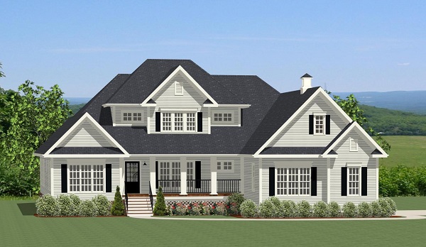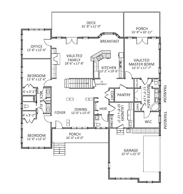 This spacious 2-story offers style and convenience without compromising the farmhouse character. Open formal dining from the foyer leads into a vaulted family room with a fireplace, built-in shelving and French doors leading out to a spacious deck and covered porch accessible from the master bedroom. A home office with a view of the back yard provides the perfect workspace. The large kitchen is complete with a breakfast nook set in a bay, angled sink and eating bar, double ovens and an oversized walk-in pantry. A large main level laundry and mudroom with bench seating, a sink and plenty of cabinets and counter space provides extra efficiency for busy schedules. The main level master suite offers privacy as well as luxury with a corner soaking tub, separate shower, double vanities and a large walk-in closet. Two main level bedrooms share a large Jack & Jill Bathroom with double vanities and plenty of linen storage. The second level provides a large guest suite complete with a walk-in closet and full bath. A window seat set in a dormer provides extra hallway light. Additional storage is provided as well as an optional bonus room over the garage, perfect for a future recreation room.
