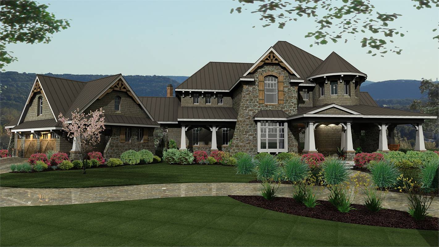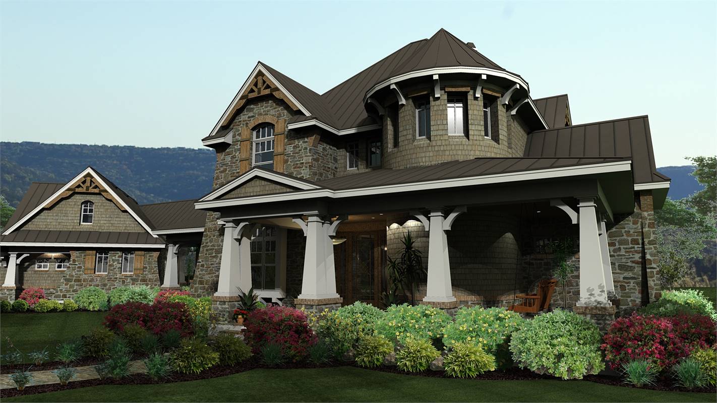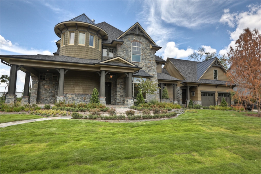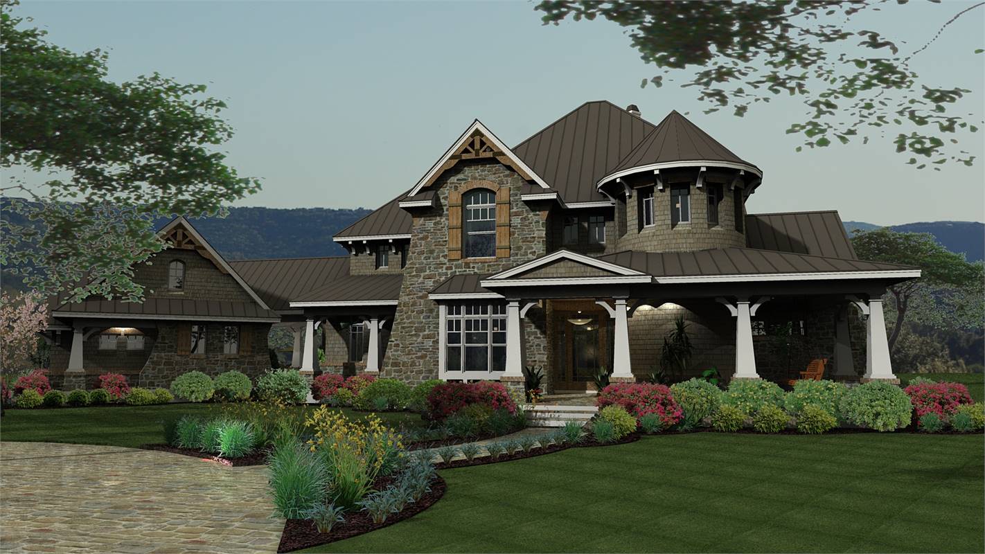 Sure, fairy tales are for kids. But you can still enjoy a magical feeling when you see this homes shutters, stonework and stair tower! The interior of the home is packed with special features, such as a curved bar, wine storage, and a computer nook. A versatile bonus room above the garage can become anything you wish. How about making it a secluded spot where you can pursue your favorite hobby? Or a reading room where you can read fairy tales to your children? These house plans measure 3,349 square feet.