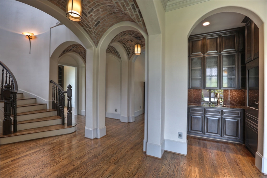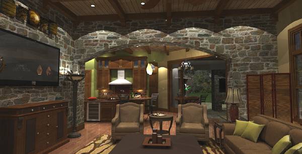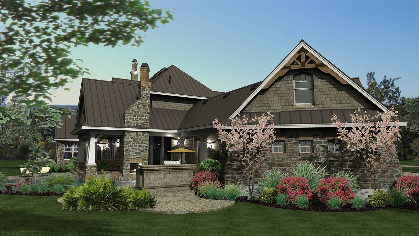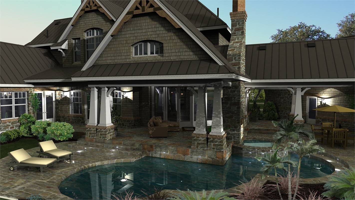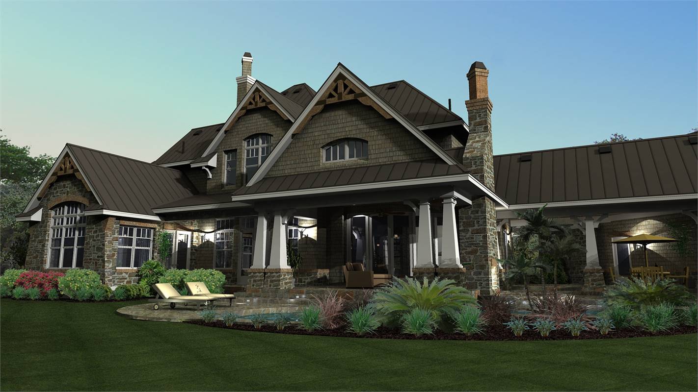Sure, fairy tales are for kids. But you can still enjoy a magical feeling when you see this homes shutters, stonework and stair tower! The interior of the home is packed with special features, such as a curved bar, wine storage, and a computer nook. A versatile bonus room above the garage can become anything you wish. How about making it a secluded spot where you can pursue your favorite hobby? Or a reading room where you can read fairy tales to your children? These house plans measure 3,349 square feet.