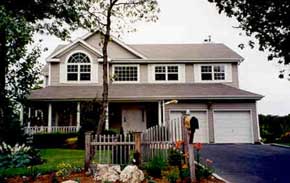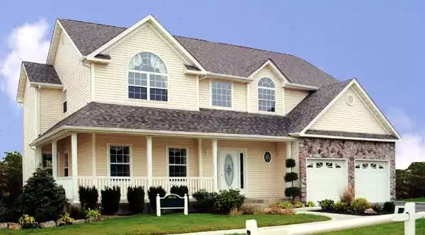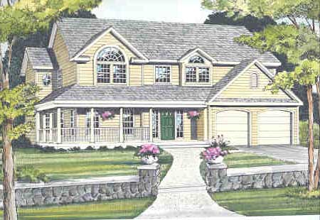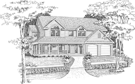 Eye-catching windows plus an appealing wraparound porch highlight the exterior of this outstanding home. High ceilings and large-scale living spaces prevail inside, beginning with the two-story-high foyer. The spacious living room flows into the formal dining room, which accesses the front porch as well as an optional backyard deck. The island kitchen combines with a bright breakfast room, also with deck access. The fabulous family room offers a warm corner fireplace, a soaring 18-ft. vaulted ceiling open to the upper-floor balcony and a wall of windows. Upstairs, the luxurious master bedroom boasts an 11-ft. vaulted ceiling, a magnificent arched window and two walk-in closets. The skylighted master bath features a spa tub, a separate shower and a dual-sink vanity. The three remaining bedrooms are reached via a balcony hall, which offers a stunning view of the family room.