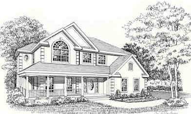 A dramatic entry leads from the wrap-around front porch into an angled staircase that leads up to the master bedroom suite and three additional bedrooms. The grand family room is topped with a vaulted ceiling and provides access to an optional wood deck at the back of the home. For formal dining space, the dining room is set apart from the center island kitchen and breakfast area, where more informal meals may be taken.