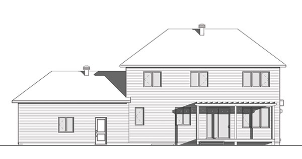 The stately appearance of this modern two-story design will impress visitors. The main floor is perfect for entertaining, with the kitchen, great room and dining room flowing together with ease. You can expand your party to the backyard deck, with its unique pergola above. On the second story, the master bedroom opens to a front-facing balcony. The luxurious bath flaunts a garden tub and a separate shower.