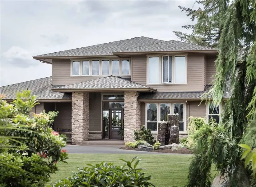 On the far right, the master suite holds a salon with tray ceiling, a walk-in closet and a lovely bath with spa tub and dual sinks. Three bedrooms on the upper level revolve around a balcony hall with a large linen closet. Bedroom 2 has a private bath.
