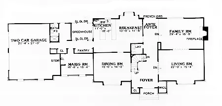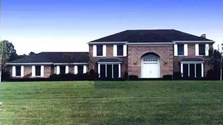 This formal brick facade is expanded by a large one story wing that house a guest room, greenhouse and garage. An enormous living room/family room arrangement accommodates every family's needs. The roomy breakfast area adjoins the kitchen, which overlooks a rear greenhouse or porch.