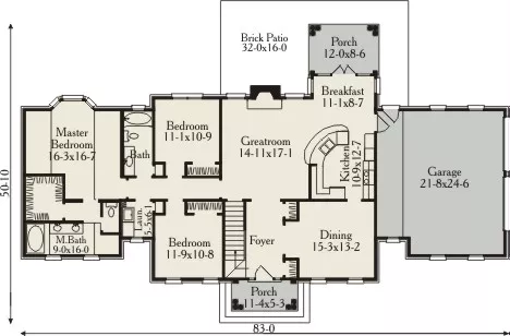 Symmetry and fine detailing define this classical faade. The foyer is host for the stair leading up to the 499 square feet of future space above. For convenience the laundry room is located near the bedrooms and baths. The master suite offers a vaulted ceiling and bay window.