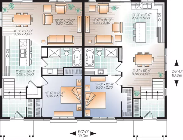 One of the most charming duplex plans that you have ever seen, this country contemporary fusion makes for a great building that is ideal for small lots. Each side is a mirror image of each other boasting 1700 square feet of living space amongst two private floors, including 3 bedrooms and 2 bathrooms each. Separate covered front porches open in to the split-level foyer. From here, you move past the first bedroom and a full bathroom, and in to the spacious eat-in kitchen. The dining room is directly off of the kitchen thanks to the open layout which then leads to the living room and a shared wall as well as a private exterior access for each unit. The lower level finds two more additional bedrooms as well as a shared full bathroom and laundry room for discreet chores. A secondary living room and undesignated bonus space make this level a great and private area to escape and relax with your family after a long day at work.
