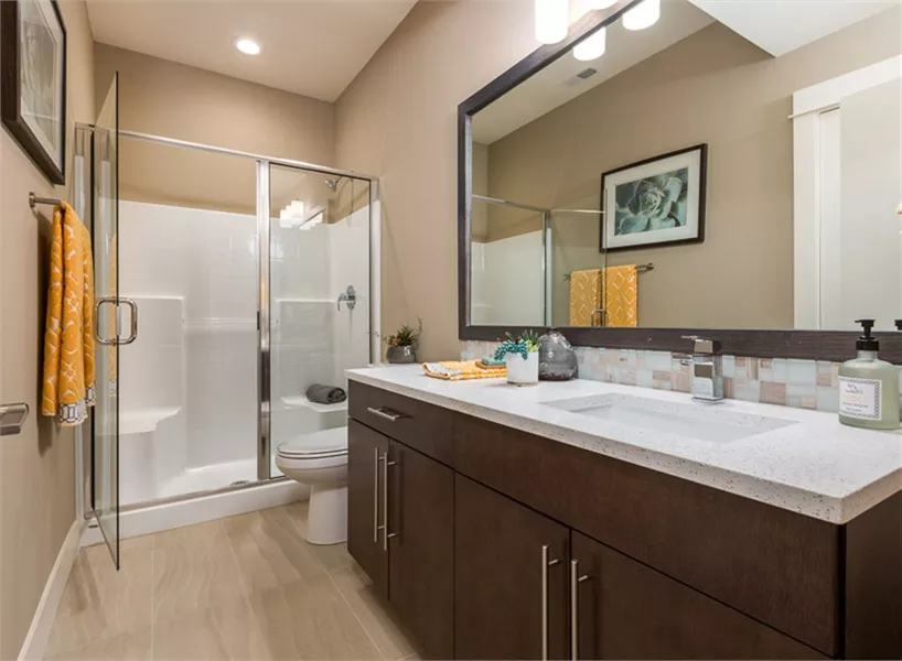 Uniquely eye catching, this plan is the perfect medley of modern and Craftsman styles. Great for a sloped or narrow lot, every inch of this home has been designed for maximized functionality and unmatched enjoyment. Standing 3 stories high and boasting 4 bedrooms and 3.5 bathrooms amongst 2,619 square feet of space, this plan is great for families big and small. Enter inside either via the covered front walk or the drive-under 2-car garage. The bottom level houses not only the garage, but a large rec room as well as a full bed and bath, making this a great option for guests. The main level is flooded with natural light thanks to the addition of large windows on the exterior walls. The open concept design joins the dining room and great room, along with the kitchen, seamlessly into one flowing space. Upstairs finds the other 3 bedrooms, including the master, complete with a dual vanity spa bath and a large walk-in closet. Laundry is conveniently nearby, making for quick and easy chores.