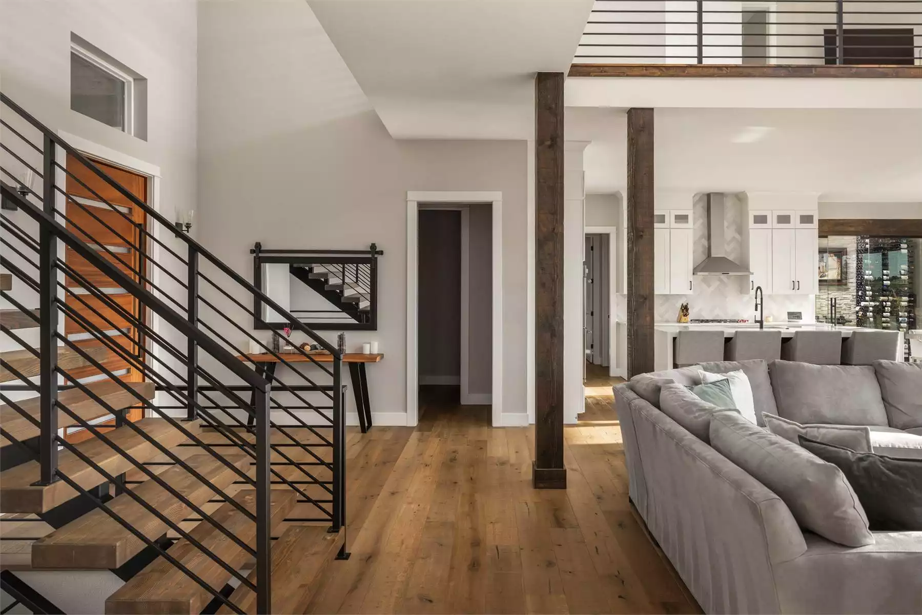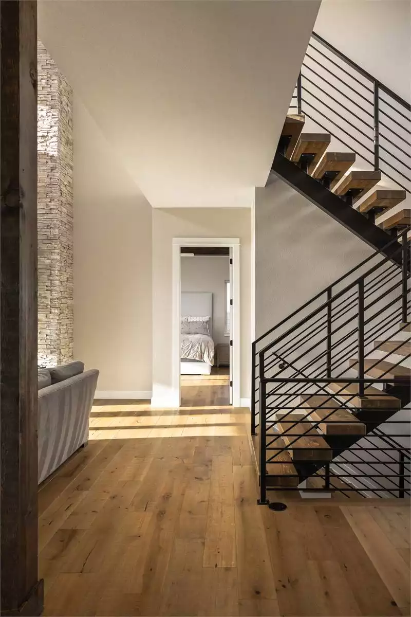 Welcome to McCrae Heights, a stunning luxury mountain craftsman with 6 bedrooms, 5.5 baths, and 4,464 square feet of exquisitely designed living space. A charming front porch welcomes you into an open-concept main floor featuring a two-story great room with vaulted ceilings and a seamless flow into the casual dining area and kitchen. The spacious kitchen includes a center island and large pantry, while the adjoining office and laundry spaces add everyday functionality. The luxurious main-level primary suite boasts dual walk-in closets and a spa-inspired bath with his-and-hers vanities. Upstairs, a central loft connects three additional bedrooms and a covered deck, with views into the great room below. The 3-car garage includes designated storage space and a separate 1-car bay—perfect for hobbies or extra vehicles. Ideal for mountain living or scenic countryside builds, this plan maximizes comfort and elegance at every turn.
