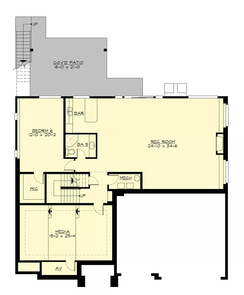 This beautiful 6 bedroom Craftsman house plans offers a grand lifestyle with the flexibility to accommodate a large family. The graceful entrance welcomes you into the foyer, with a view of the staircase and second floor. A gourmet island kitchen and nook complete the large informal living spaces, along with other generous spaces like the powder room, butlers pantry, laundry, large den, and a private deck. Upstairs, the layout includes a master suite with walk-in closets a decadent master bath with a soaking tub, and five other bedrooms. On the lower level, you'll find a spacious bonus room or recreational room. Additionally, this 6,389 s.f. home has a three-car garage and plenty of outdoor living spaces.