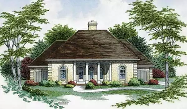 The exterior of this striking home is finished with brick veneer. In from the columned front porch, the foyer unfolds to the expansive living room. A fireplace in this room heats things up nicely. Located between the formal dining room and the bayed dinette, the U-shaped kitchen features plenty of counter space and a handy pantry closet. The lush master suite boasts a huge bedroom, an adjoining study and home office, and a private bath with a spa tub, a separate shower, dual sinks and two walk-in closets. The living room ceiling slopes to a height of 12. The foyer, MBR, front secondary bedroom and dining room all have magnificent 12 ceilings. Typical ceilings elsewhere are 9.