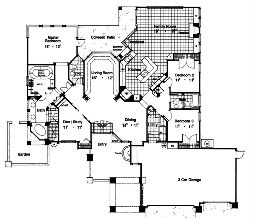 Unique "entry-scape" design sets the mood of this home from curbside. Fabulous use of soffits and trays bring excitement upon entry. Double doors lead to master's retreat bathed in glass, and enjoys a private garden while bathing. Gourmet kitchen places everything at minimum distances, and serves an outdoor kitchen/nook and family room. Secondary bedrooms share a bath with arched openings and niches.