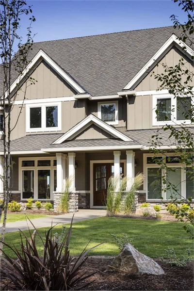 An astounding traditional estate, this southern style plan features 2-stories and an amazing 6,349 square feet of living space. With a 4-car garage with plenty of storage, you will have no shortage of parking space. Relax and watch the sunset on the covered front porch before stepping inside and on to the grand foyer with a formal dining room to your immediate left. Move through the butler’s pantry in to the stunning gourmet kitchen and its second walk-in pantry. A fabulous open concept means that the kitchen joins directly with the nook and the two story vaulted great room, complete with access to a rear covered porch and outdoor living space. A private office with its own covered front porch is nearby, as is a guest bedroom with its own en-suite and large closet. The fun continues upstairs as you find yourself in another sprawling floor. Here you will discover great things such as a walk-in attic and a spacious game room, it even features your very own in-home gym! The master suite is jaw dropping, thanks to its large bedrooms and very own fireplace, as well as the luxurious bathroom and massive his and hers walk-in closets. Three more bedrooms make up this level, two of which share a jack and jill bath, while the other has its own en-suite. Plenty of dedicated storage spaces and rooms ensure that your home will never feel cluttered or crowded.