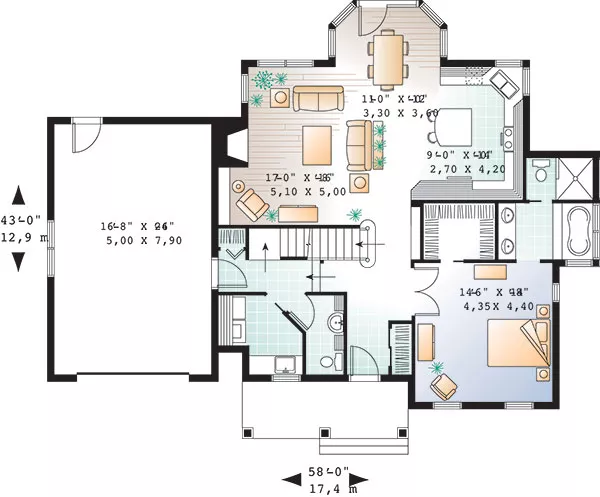 Arches and columns give a charming look to this four-bedroom country design. Beyond the front porch, the foyer includes a handy coat closet. A powder room is just steps away. The kitchen, dining room and great room flow together to facilitate entertaining. A garden tub anchors the fantastic master suite. More bedrooms and baths are located upstairs.