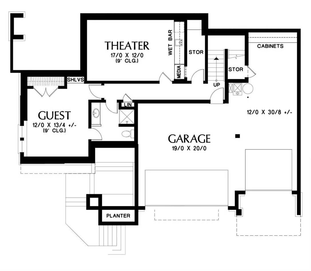 Boasting an incredibly attractive level of curb appeal, this traditional craftsman style house plan is as unique as they come. Standing 3-stories high, this 3,439 square foot home provides 4 bedrooms and 3.5 bathrooms, as well as many hidden gems. This amazing amount of space begins on the lowest level in which the 3 car garage resides. Also located on this level is a guest bed and bath suite, as well as a full theater and wet bar. Family movie nights will be taken to a whole new level with this fully functional theater and media space. Moving upwards to the main floor, you are greeted with an impressive 2-story great room with built-in window seats and a double-sided fireplace. The other side of the fireplace opens to the den which has a private balcony overlooking the front of the home. The backside of this floor is home to the kitchen and dining room, which provide access to the outdoor living area and its expansive built-in grill and dining area, topped off with an outdoor fireplace. The third and final floor is where the final 3 bedrooms are located, including the master bed and bath and 2 additional bedrooms which share a jack and jill bathroom. The master suite also offers a private balcony, perfect for a romantic evening and a glass of wine while watching the sun set. Overall, this plan offers an outstanding amount of space paired with phenomenal curb appeal, making it a great option to consider as you select your dream home