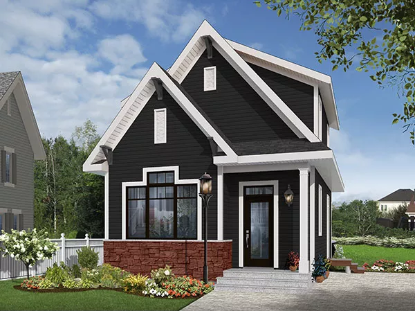 This attractive but small country two-story welcomes guests at its lovely porch. Inside, a handy coat closet accepts jackets. The cozy living room and kitchen facilitate entertaining. A visitor or in-law may wish to use the bedroom and bath on the first floor, especially if stairs pose a problem. The second floor hosts two additional bedrooms and a hall bath.