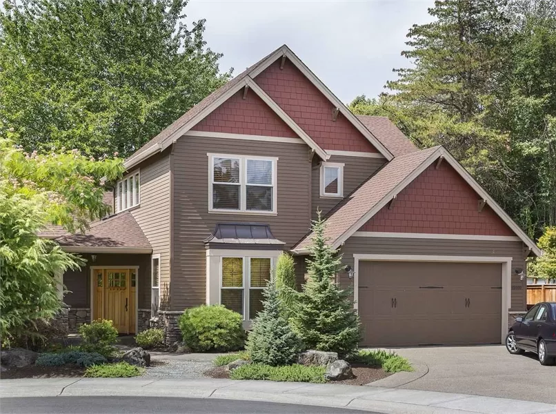 The master suite is on the upper level, along with two family bedrooms. A vaulted master bedroom joins a deluxe bath with spa tub and compartmented toilet.