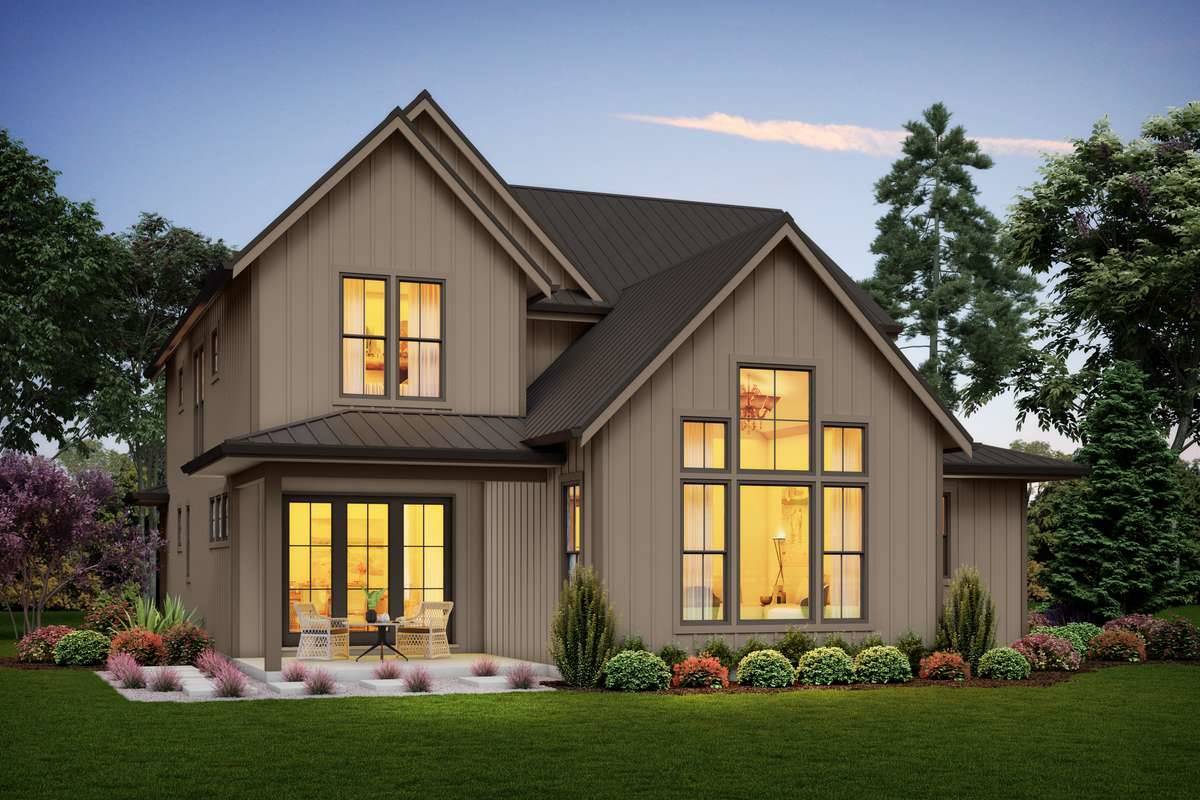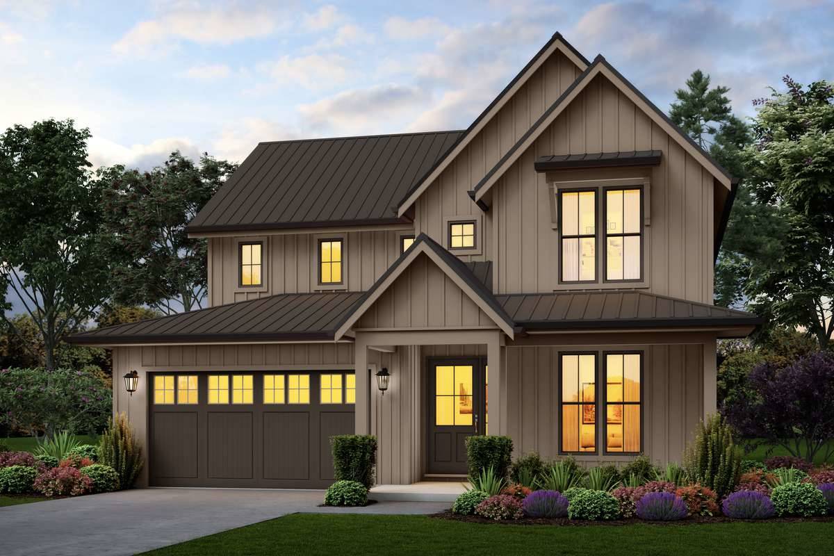 With so much to offer, it's hard to figure out where to begin with this amazing 2-story farmhouse-style plan. For starters, a 2,448 square foot layout offers 3 large bedrooms and tons of other great spaces amongst its open concept design. The first floor offers All of your main areas, including a vaulted great room with cathedral ceilings and stunning 2-story windows. Nearby is your island kitchen and dining nook, along with a private den/office. Upstairs finds all of the bedrooms, including the master with its amazing built-ins and large spa bath and walk-in closet! Notice how each bedroom is vaulted and has its own walk-in closets, a convenient and rare feature.