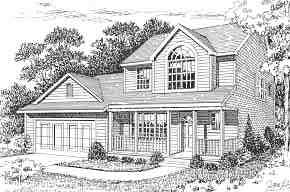 I designed this two story home to be eually affordable and attractive. The plan wastes no square footage and is splendidly furnishable, fitting my philosophy about small homes. But it is also attractive with plenty of curb appeal. A covered front porch opens into afoyer area that visually flows into the living room; the formal dining room visually connects to both. Alovely country kitchen faces the rear patio. Upstairs the master enjoys a dramatic vaulted ceiling with a large feature window at the front. It includes a full private bath and walk-in closet.