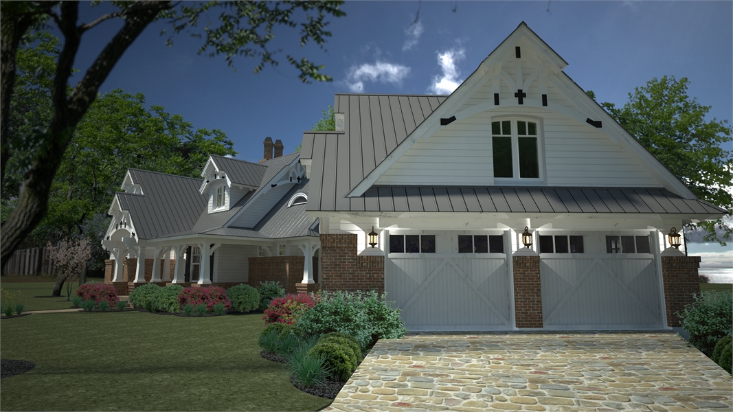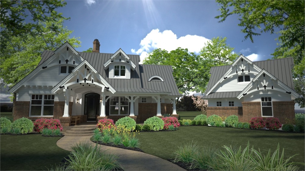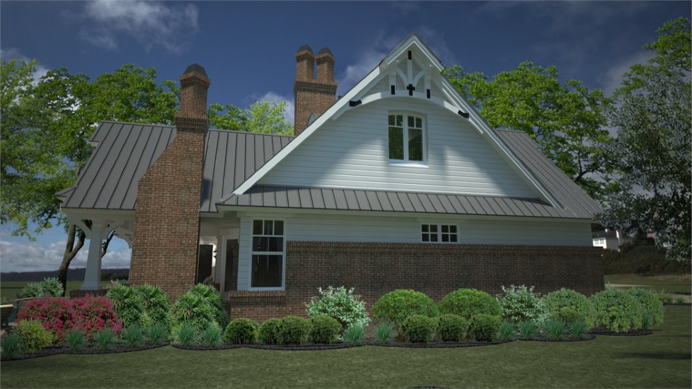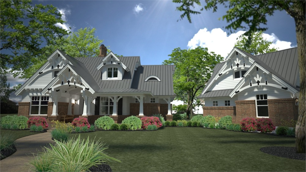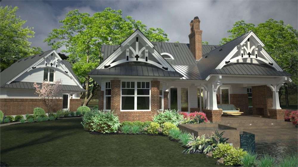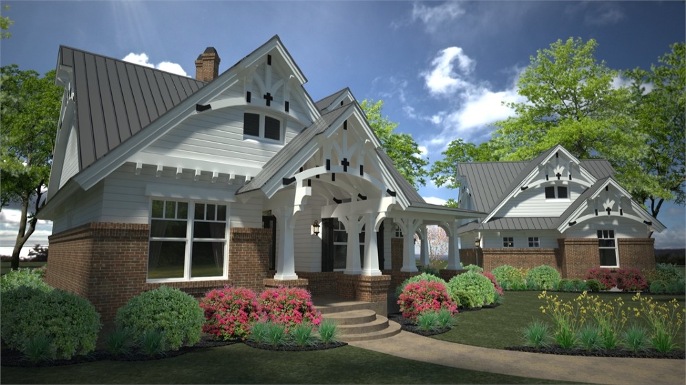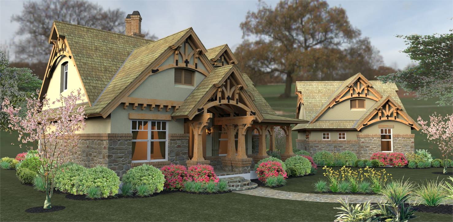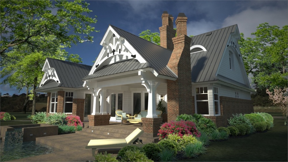 House plans with only 1,421 square feet don't normally showcase this many features! Part of this home's popularity is the fairytale front porch with all the charming Craftsman details. The kitchen island is perfectly located to open up to the family room where a fireplace is the center of family gatherings.  To the rear of this beautiful home, French doors open to a lovely lanai with a second, optional outdoor fireplace. The master suite offers gorgeous windows and access to the lanai. Upstairs, a good-sized bonus area can become another bedroom, a home office, home theater or whatever fits your needs.  Since it's been released, THD-2259 has become one of our customers and builder's favorite small home plan
