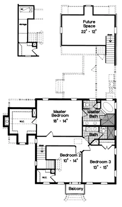 Also in keeping with the traditional design of the Early American design is the sleeping quarters on the second floor. All the family members enjoy the views of the secondary story plan, while the master suite enjoys not only views but a very generously sized sleeping room, with a unique split bath/closet design, which, again, makes for zero hallway areas. Two front bedrooms share a split bath. Making it versatile for the kids.
