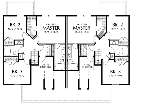Three bedrooms are found upstairs: a vaulted master suite with grand bath and walk-in closet and two family bedrooms sharing a full bath. Notice that the laundry is also on the upper level for convenience. It allows access to attic storage.