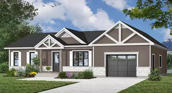 Miranda 4 - 1 Car Garage Ranch Style House, Plan 7368