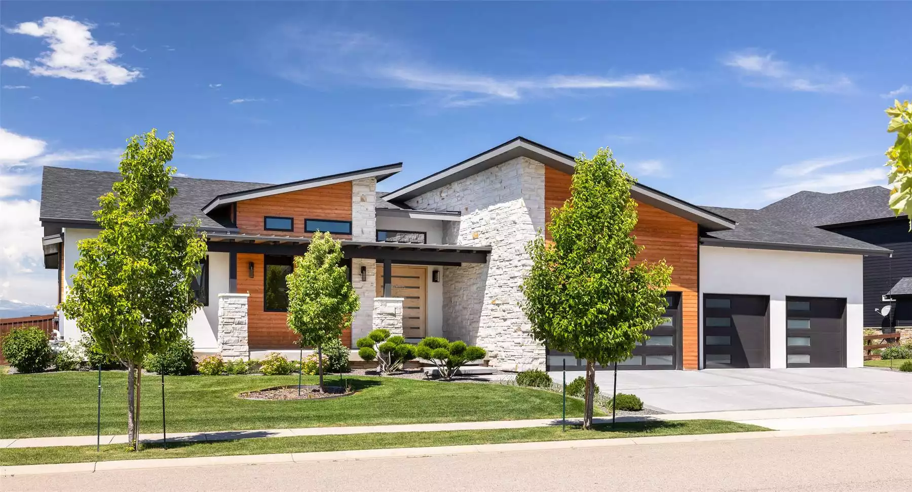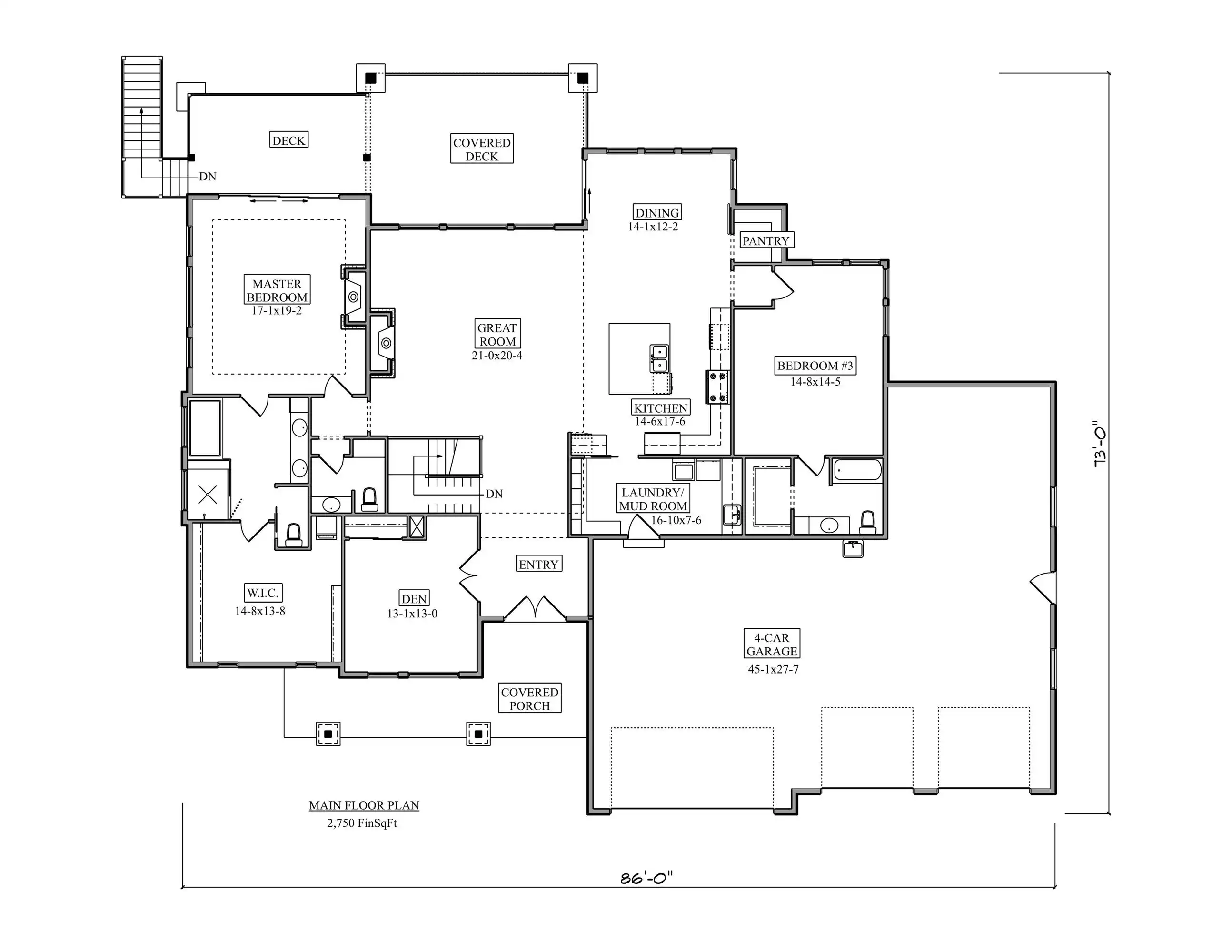 The Dolamn is a striking modern prairie-style home offering 2,750 sq. ft. of main-level living with a smart, flexible layout. The main floor includes 2 spacious bedrooms and a private den, which can easily serve as a third bedroom for guests or family. At the heart of the home is a vaulted great room with a fireplace that flows effortlessly into the kitchen and dining areas, all opening to a covered rear deck—perfect for relaxing or entertaining. The primary suite features a luxurious bathroom and deck access, offering a peaceful retreat. An optional finished walkout basement adds 2,377 sq. ft. of additional space, including two more bedrooms, a large recreation room, a bar, and a dedicated golf room that can double as a gym, theater, or hobby space. With its blend of clean lines, open-concept design, and adaptable spaces, The Dolamn is ideal for both everyday living and entertaining. Its modern prairie charm and future-ready layout make it a true standout.
